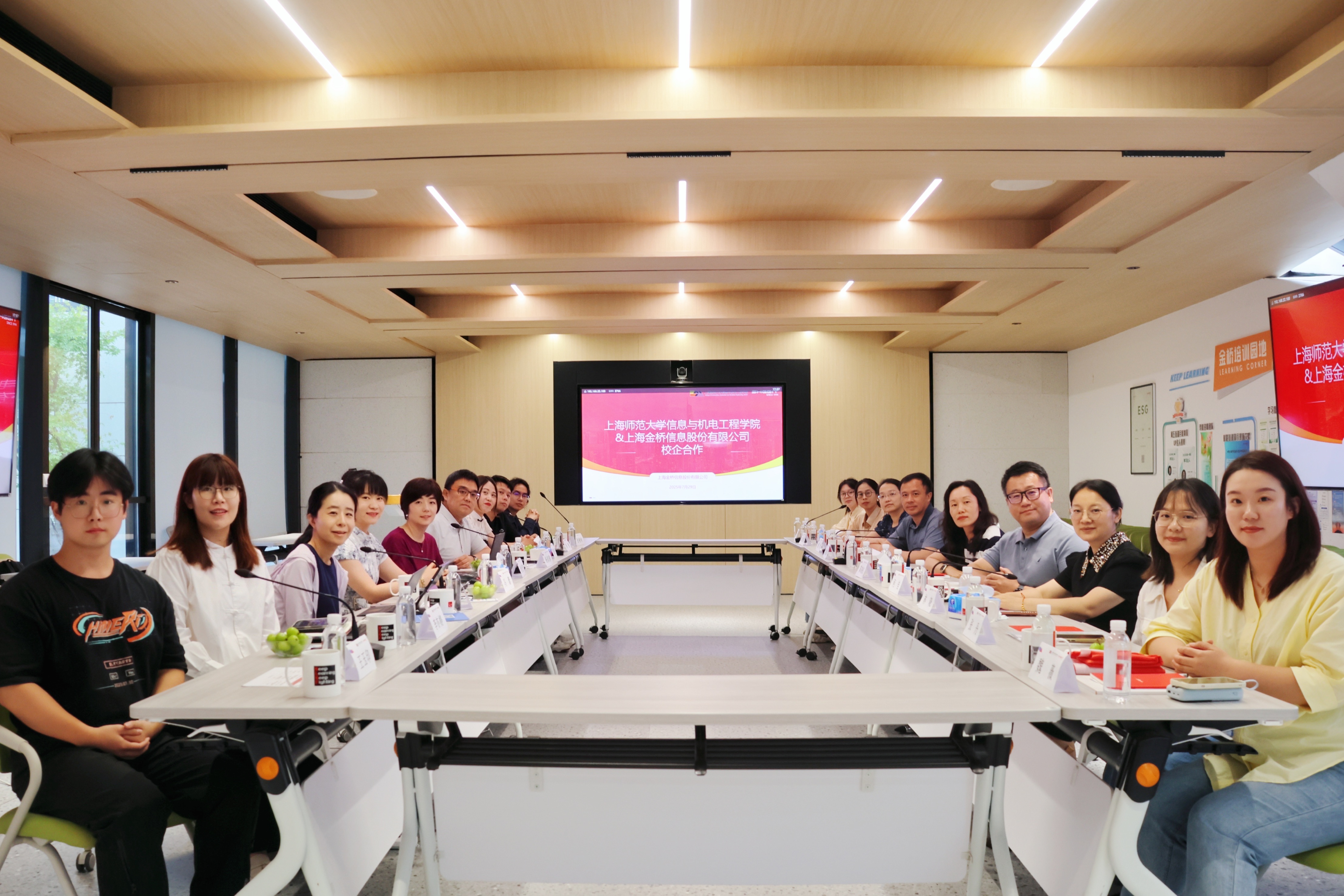 雙方圍繞新時(shí)代學(xué)生特點(diǎn)、就業(yè)環(huán)境變化、人才培養(yǎng)與企業(yè)需求的契合點(diǎn)等話題展開(kāi)了深度交流并深入探討了上海師范大學(xué)與金橋信息未來(lái)在AI人才培養(yǎng)、產(chǎn)學(xué)研項(xiàng)目、黨支共建等多維度“共建共創(chuàng)”的合作方向。校方熱情邀請(qǐng)金橋團(tuán)隊(duì)回訪上海師范大學(xué)信息與機(jī)電工程學(xué)院,進(jìn)一步推進(jìn)合作落地。