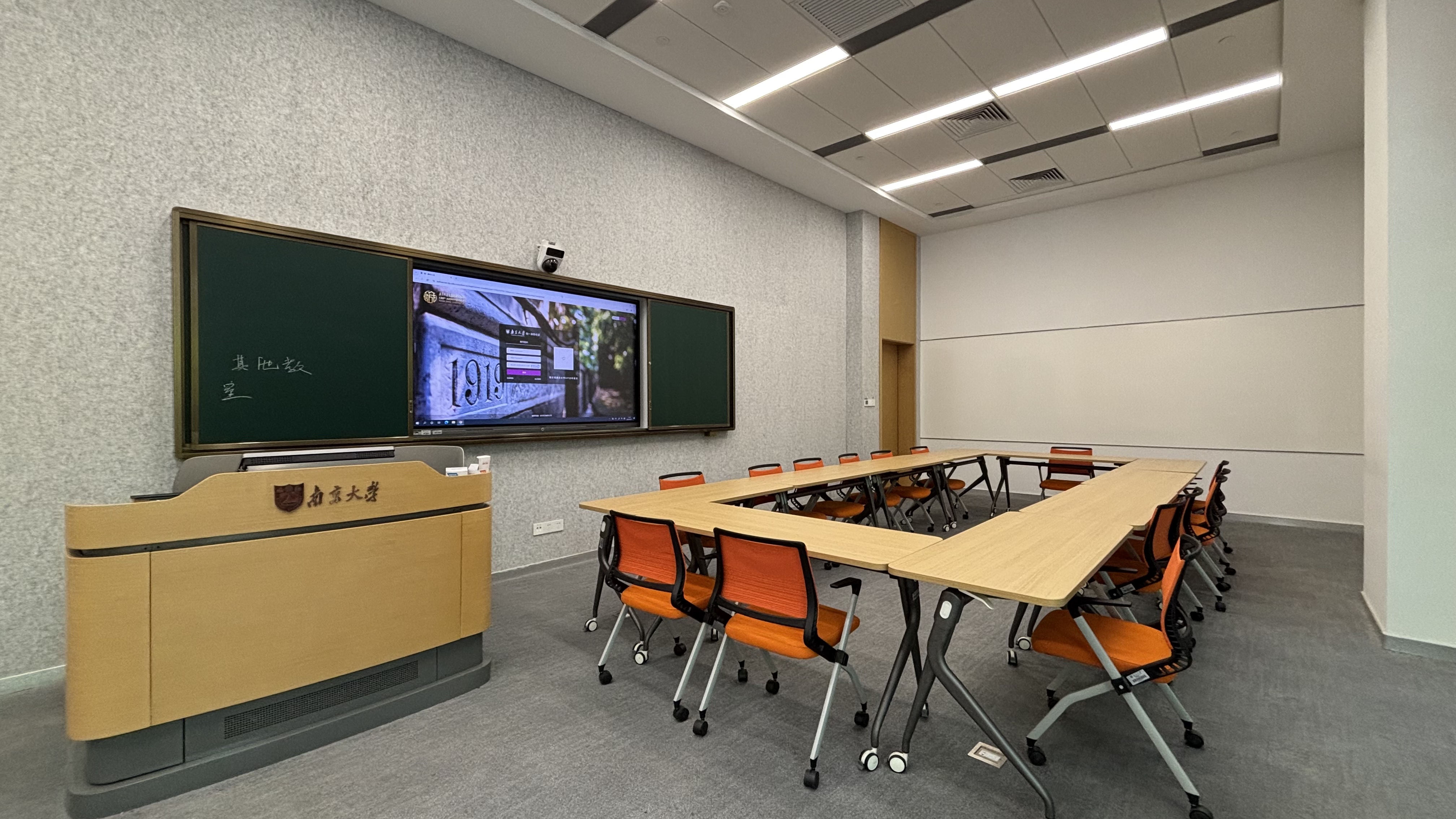 我不想著太多筆墨來(lái)展示我們?yōu)槟洗蟮闹腔劢淌掖蛟炝硕嗌傧到y(tǒng)、用了什么先進(jìn)科技,關(guān)于這個(gè)部分,一筆即可帶過(guò):那就是:我們?yōu)槟洗蟠蛟炝俗钚?、?span lang="EN-US">in、最酷、最實(shí)用的智慧教室。南大蘇州校區(qū)東區(qū)智慧教室建設(shè),將教學(xué)模式、信息技術(shù)、教學(xué)空間進(jìn)行深度融合,滿(mǎn)足學(xué)校對(duì)教學(xué)創(chuàng)新與實(shí)踐的需要。